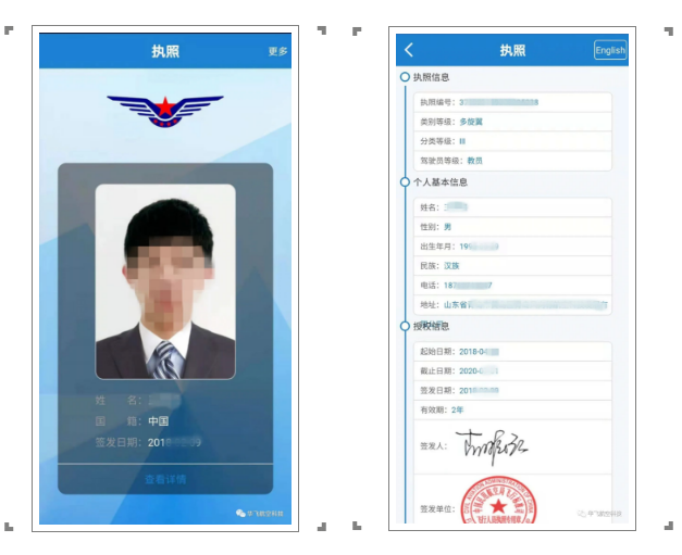 中國(guó)民航局無(wú)人機(jī)云執(zhí)照樣本