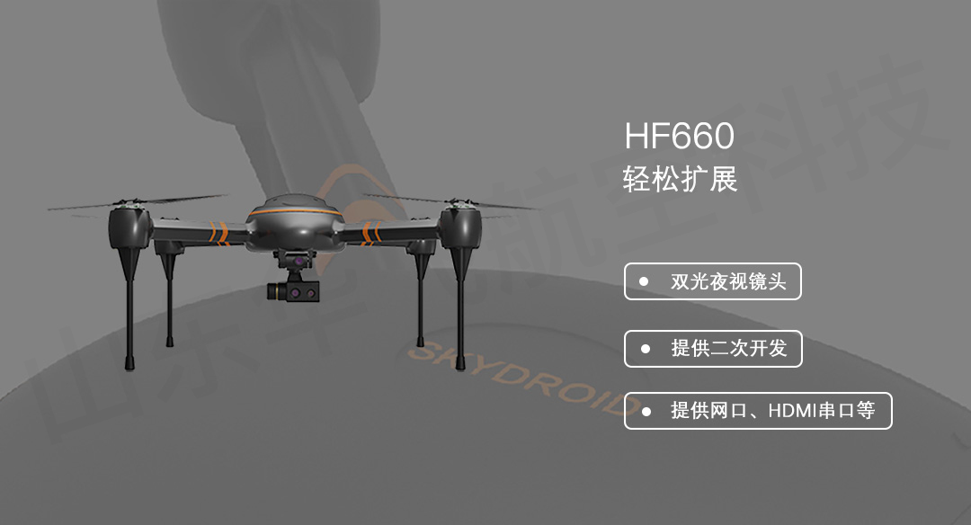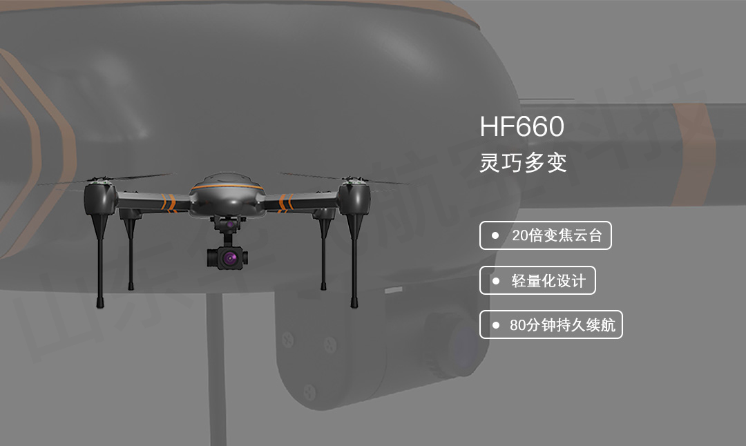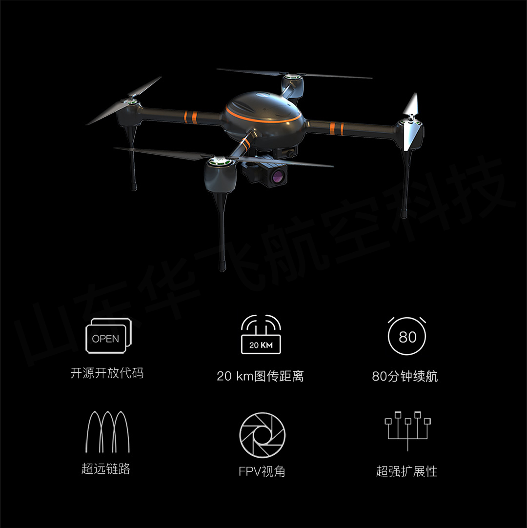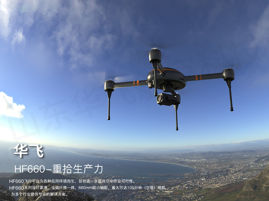華飛HF660型警用無人機設(shè)計緊湊,采用開源開放代碼,圖像傳輸距離達(dá)到20公里,續(xù)航時間80分鐘(空載),搭載14倍變焦吊艙,